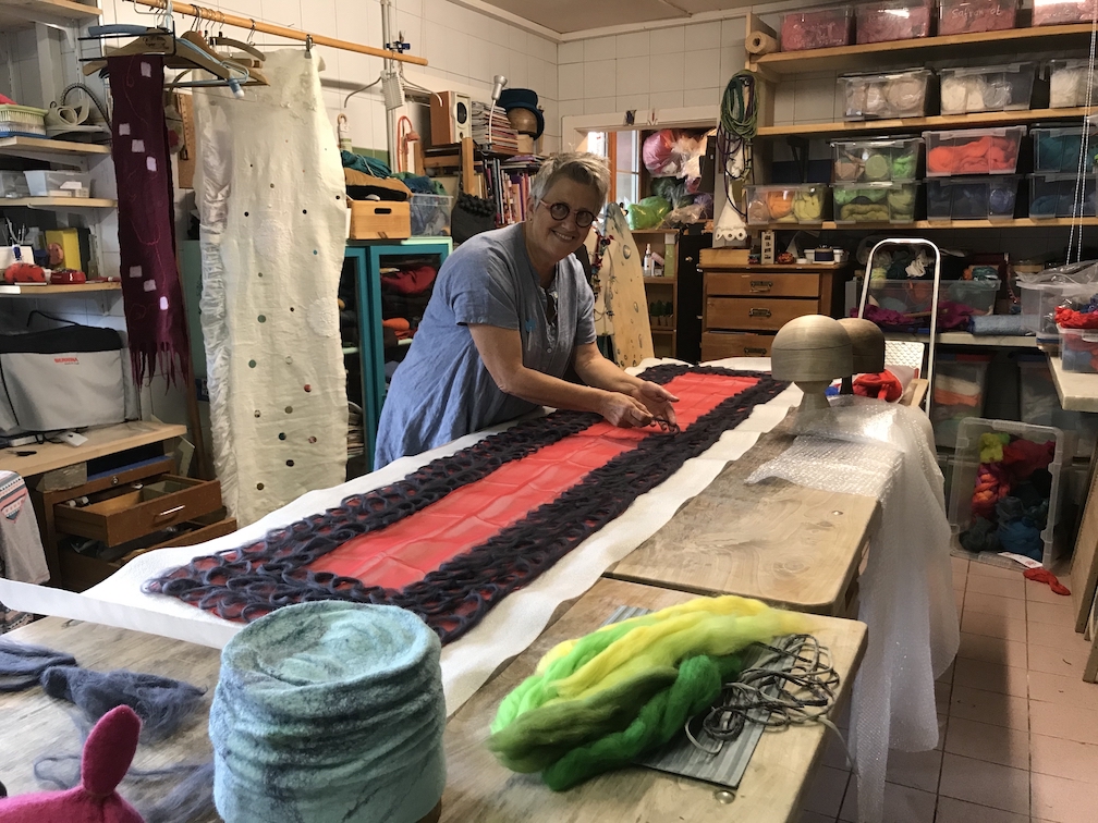 Ein Teil meiner Arbeit konzentriert sich auf die Herstellung von handgefilzten Unikaten für den Verkauf. Ein zweiter und mir sehr wichtiger Teil ist das Weitergeben meiner Filz-Fachkenntnissen. Ich war beteiligt am Aufbau eines Filzlehrganges und habe diesen während mehreren Jahren in Zusammenarbeit mit zwei Filzerinnen mit grosser Freude geleitet.