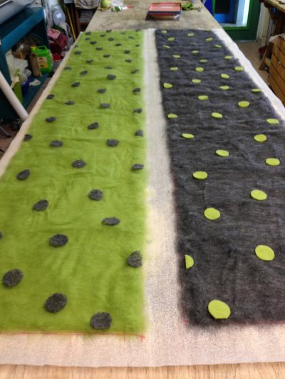 Filzen, filzen, filzen… ich filze seit 1990 und das Handwerk des Filzens fasziniert mich nach wie vor. Die Materialien sind feiner, die Filze sind geschmeidiger und die Möglichkeiten sind immer vielfältiger geworden. Die unmittelbare Einwirkung auf das Material, die sinnliche Erfahrung beim Arbeiten und die Fülle an Gestaltungsmöglichkeiten machen die Arbeit mit Filz echt spannend. Die Farben spielen dabei eine sehr grosse Rolle.